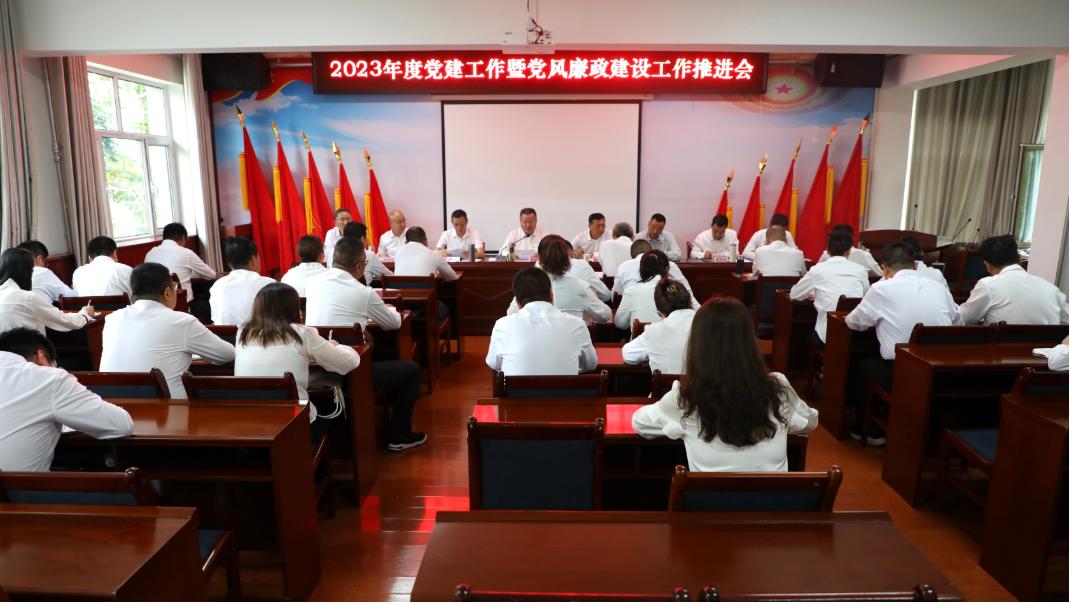为全面总结市农发集团2023年上半年基层党建工作和党风廉政建设工作,查找问题短板,进一步压实下半年基层党建工作责任和全面从严治党主体责任,明确工作任务,全力推进集团公司所属各级基层党组织党建工作提质增效再上新台阶。8月5日,市农发集团党委召开2023年度党建工作暨党风廉政建设工作推进会。市农发集团党委书记、董事长李盛新同志主持会议,市纪委监委派驻市政府国资委纪检监察组李樑同志,集团公司领导班子成员、各党总支(党支部)委员会全体委员、党务工作者、集团公司各职能部门和各子公司负责人共计40余人参加会议。