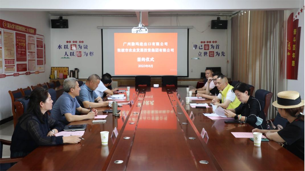 8月24日,市农发集团与广州勤玛进出口有限公司举行座谈会并签订战略合作协议,广州勤玛进出口有限公司总经理陶义,市农发集团党委书记、董事长李盛新参加签约仪式。