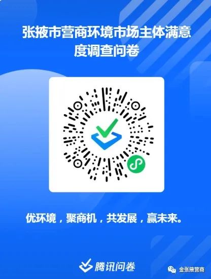 为深入推进全市优化营商环境攻坚突破年行动,准确查找我市营商环境中存在的短板和不足,市营商办诚邀广大市场主体参与营商环境满意度问卷调查。请各位市场主体如实反映问题,您的意见对我市优化营商环境建设具有重要的价值。请您选择以下方式开始进行问卷调查,真诚欢迎广大市场主体踊跃参与,衷心感谢您对张掖市优化提升营商环境工作的关注和支持!